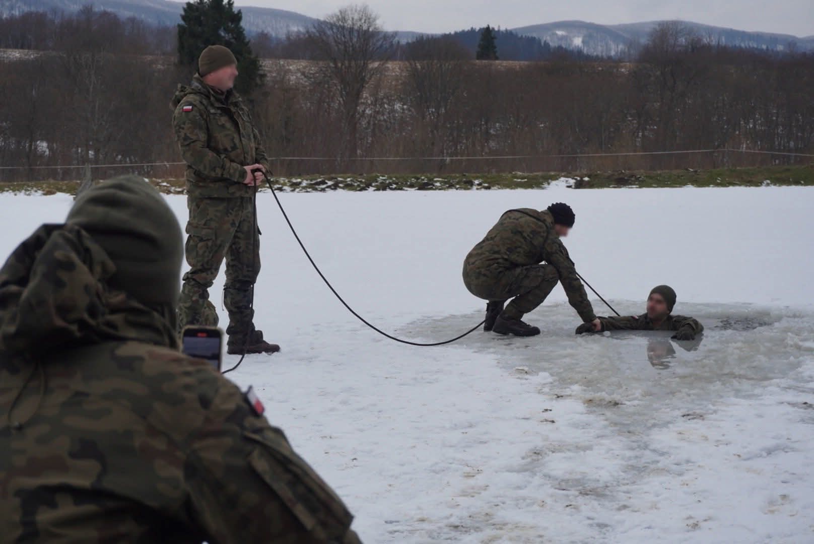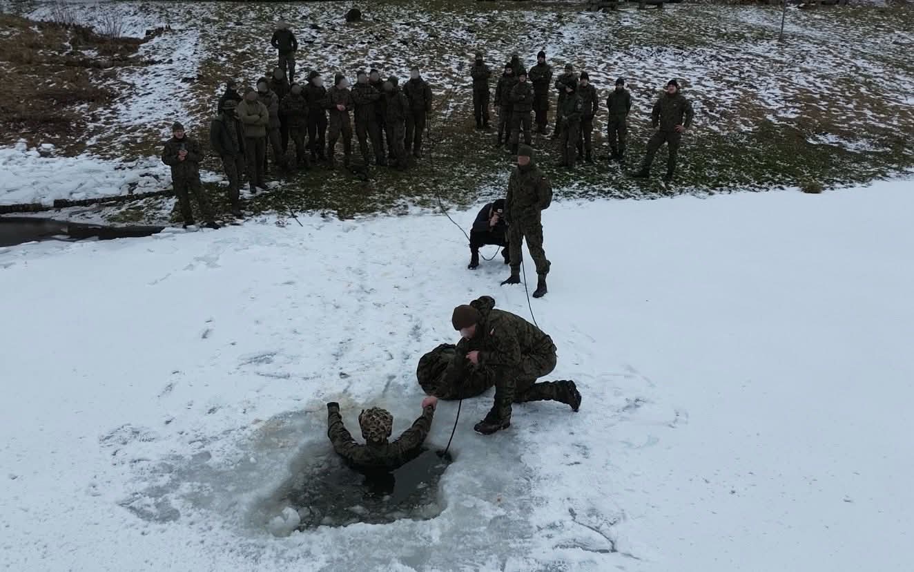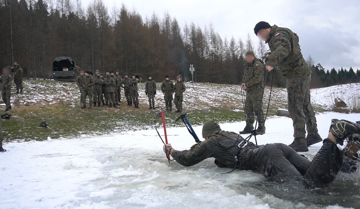 • Ratownictwo i przetrwanie: Przeprowadzono zajęcia z przeciwdziałania hipotermii, obejmujące m.in. kontrolowane wejście do przerębla. Realizowano również moduł szkolenia lawinowego, w tym wykorzystanie czekana.⛑️